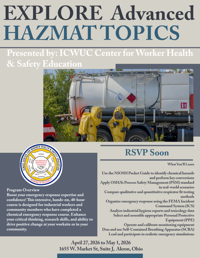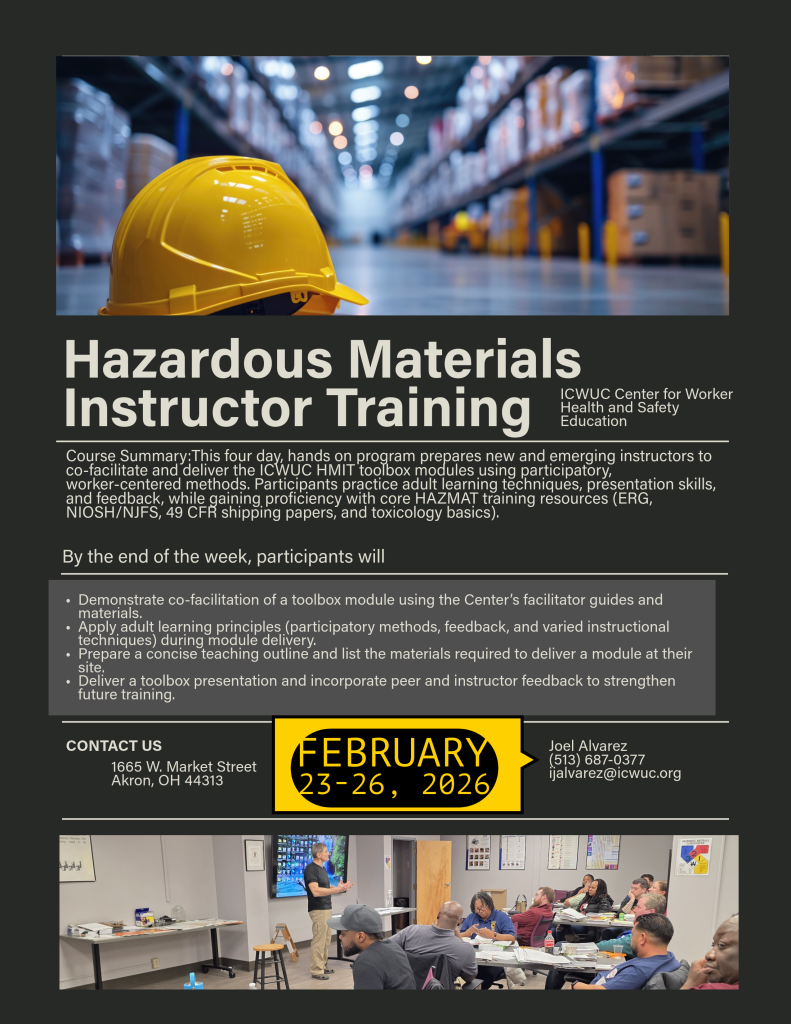 After decades of dedicated service from its Cincinnati location, the ICWUC Center for Worker Health and Safety Education will officially relocate to 1655 W. Market Street, Akron, OH 44313, July 31, 2025. This marks...